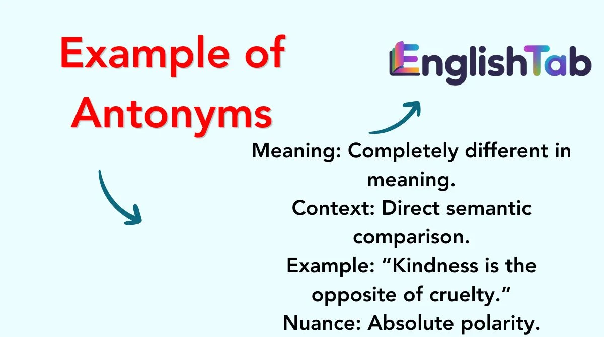 Some antonyms depend on context. The word “example” may not always have a fixed opposite. Instead, its opposite shifts depending on use.